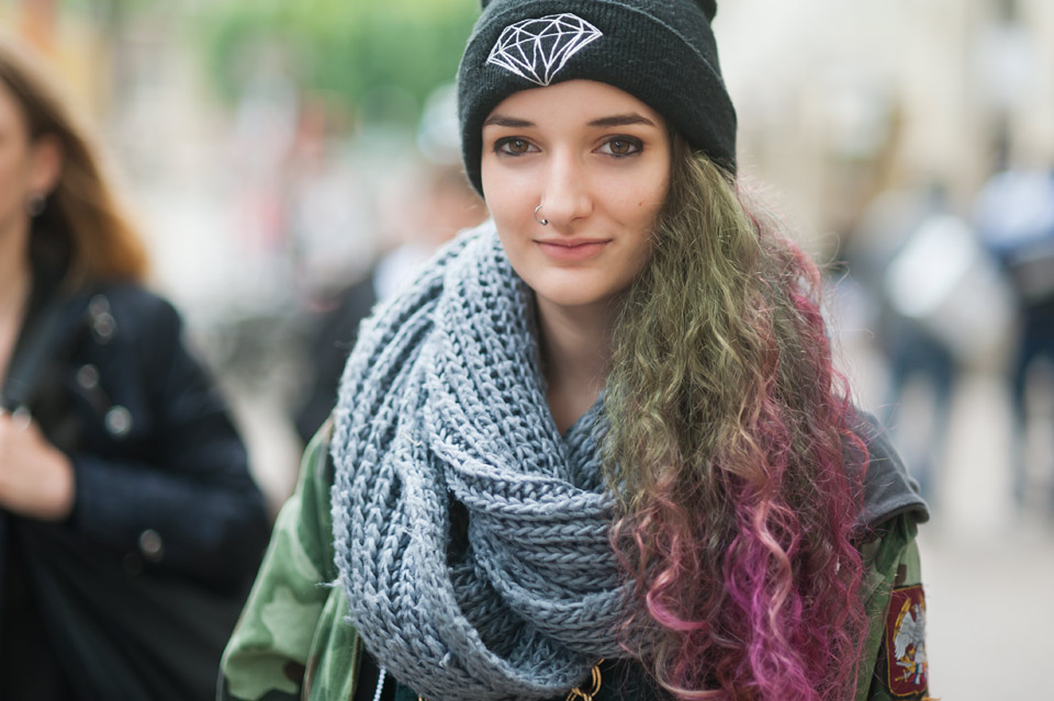 Outfit: Mütze – Diamonds, Parker – second hand, Schal – Flohmarkt, Shirt und Sweater – American Apparel, Hose – Lewis, Strumpfhose und Kniestrümpfe – Calzedonia, Schuhe – Doc Martens